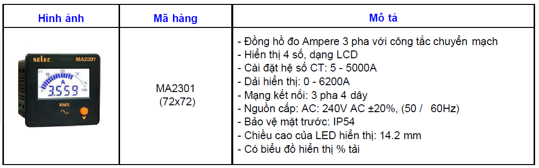 - Đồng hồ đo Ampere 3 pha với công tắc chuyển mạch