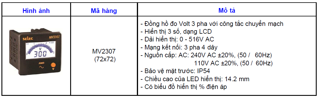 - Đồng hồ đo Volt 3 pha với công tắc chuyển mạch